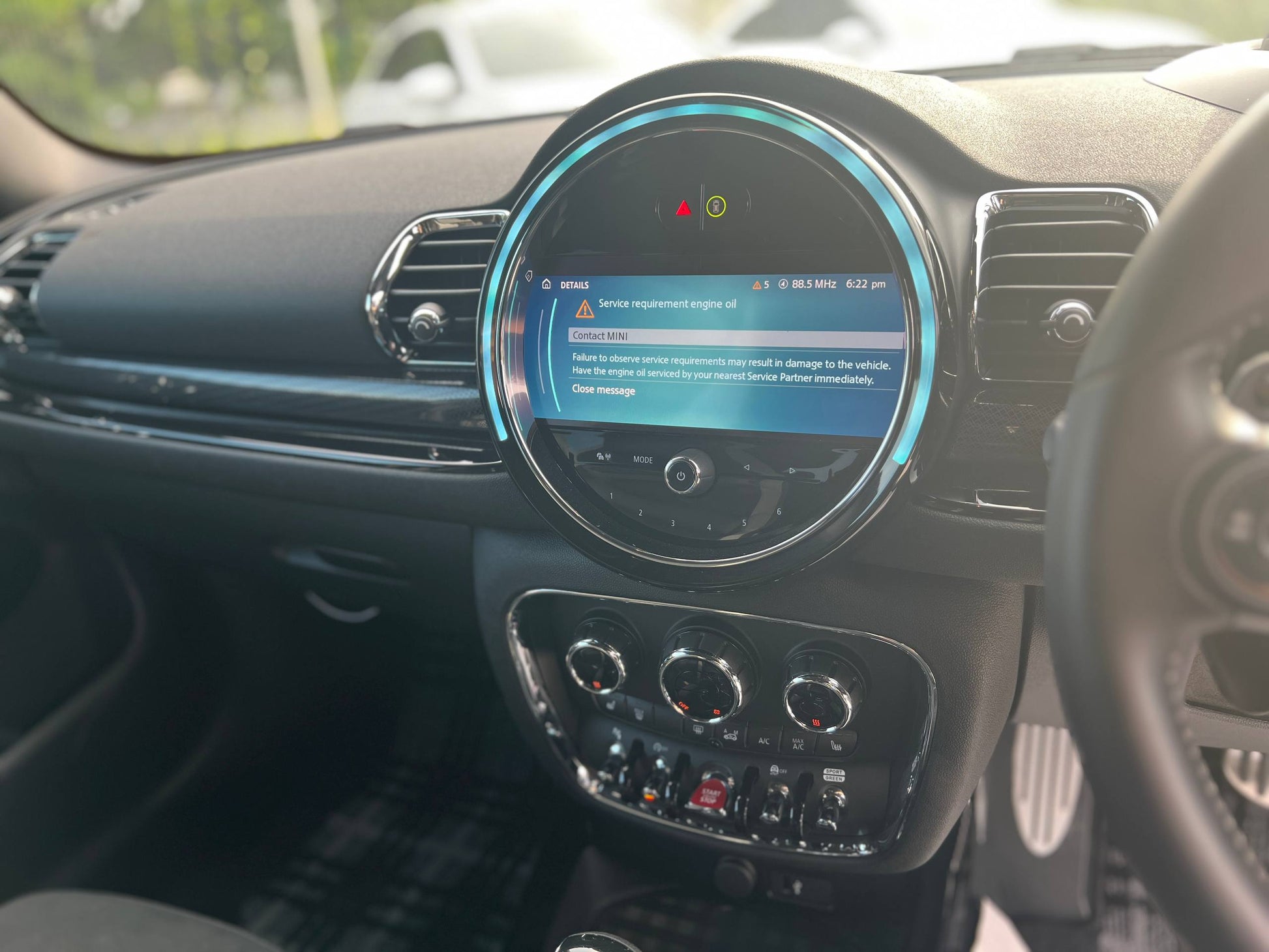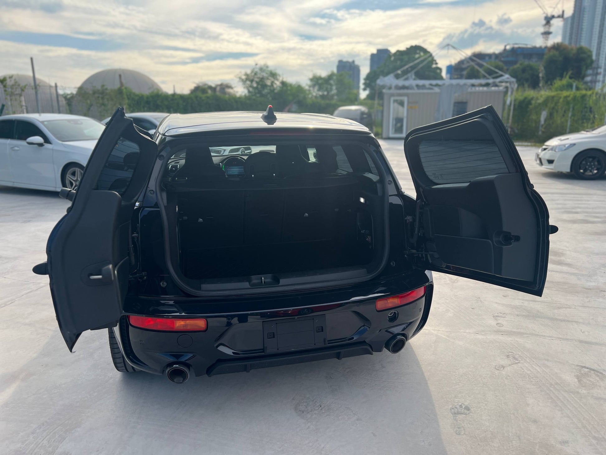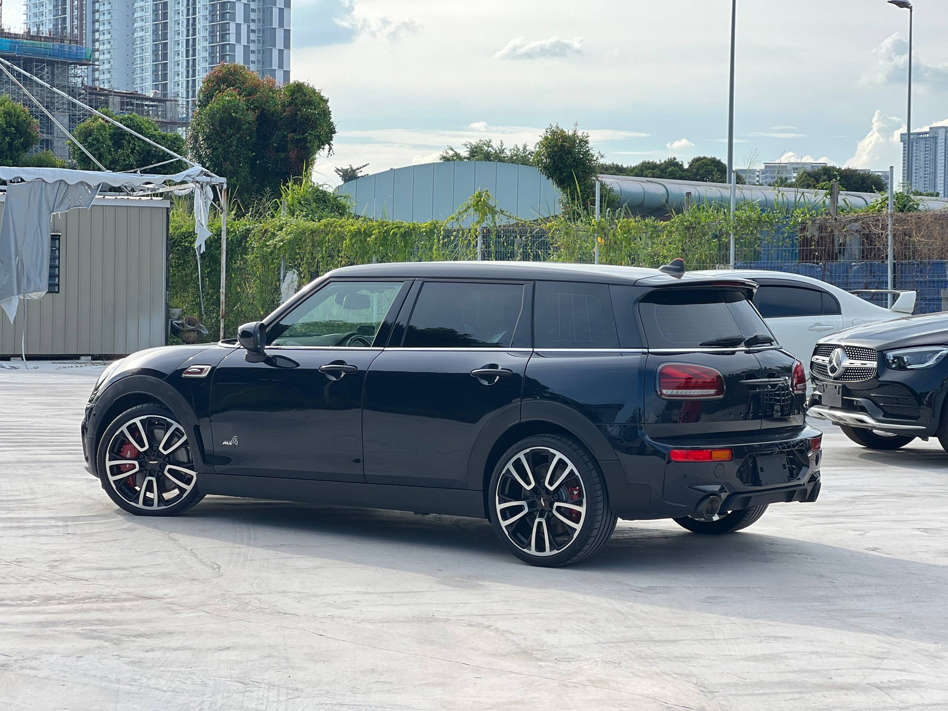 2022 MINI Clubman JCW ALL4 2.0T in pristine condition with just 17,425 km. Japan spec with Grade 5A rating. Features include piano black interior, heated leather bucket seats, HUD display, digital instrument cluster, active cruise control, LED headlights, and comfort access. Equipped with paddle shifters, multi-function steering wheel, sport/eco drive modes, electric parking brake, surround park assist, and back camera. Premium touches include Maker audio system and aggressive 19" JCW sport rims paired with Remus performance muffler. An exceptional example of MINI's high-performance compact offering.